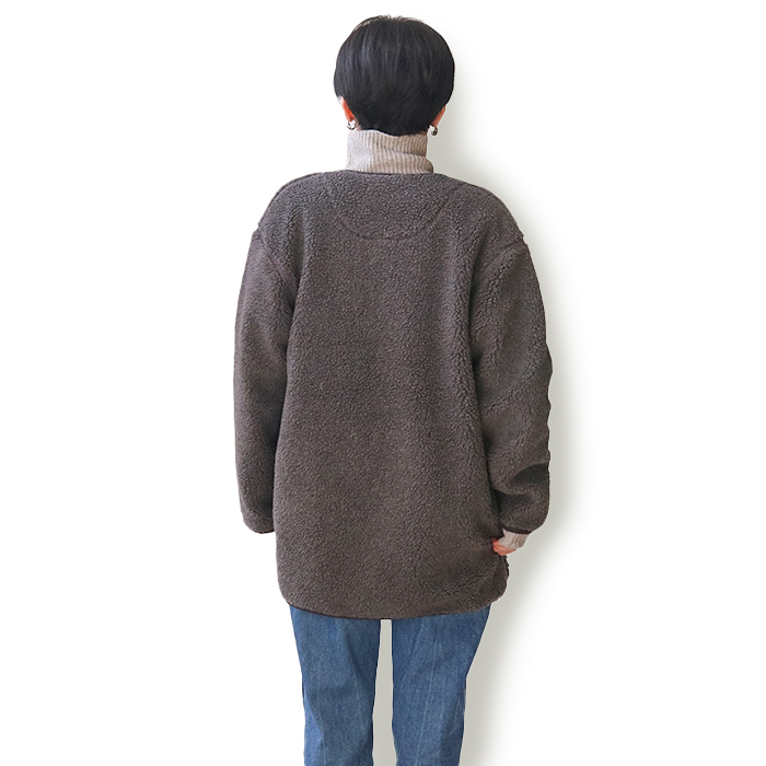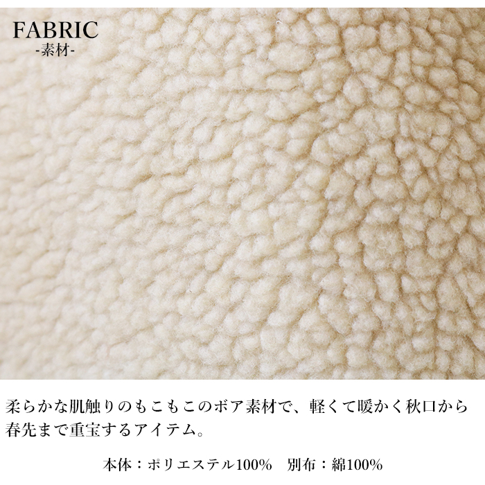 もこもこのボア素材で仕立てた、軽量ながらミドル丈で腰周りまでカバーしてくれる秋冬にぴったりのアウターです。