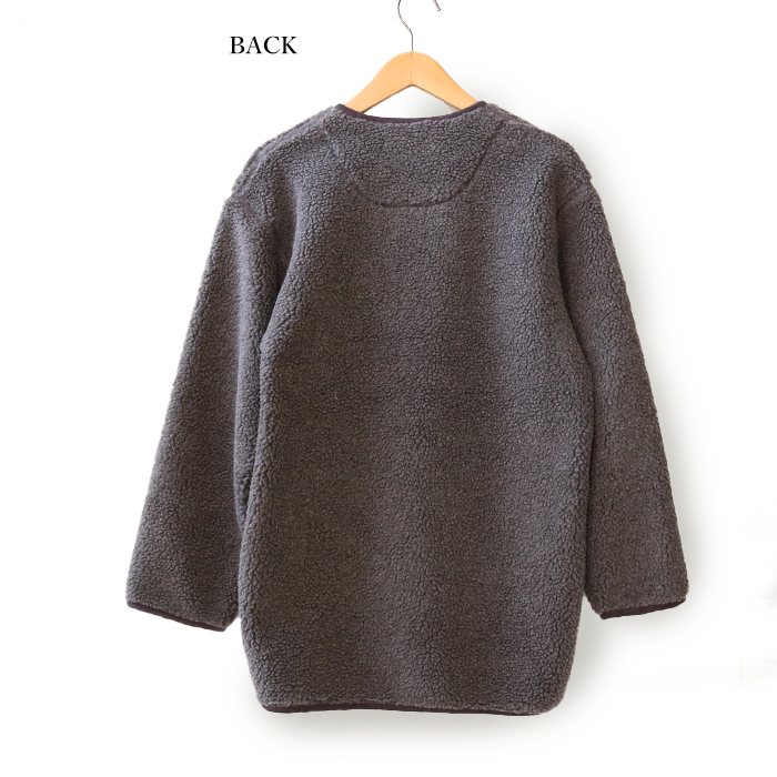 ノーカラーの襟元は、シャツやタートルネック、プルオーバーパーカーなどインナー次第で様々なアレンジが楽しめます。