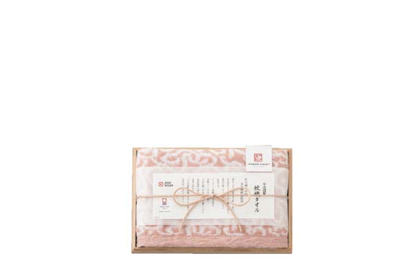 今治謹製 紋織タオル フェイスタオル(木箱入) ピンク 〈IM7710〉 SG-r8a
