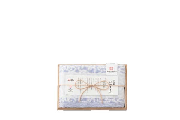 今治謹製 紋織タオル フェイスタオル(木箱入) ブルー SG-r8a