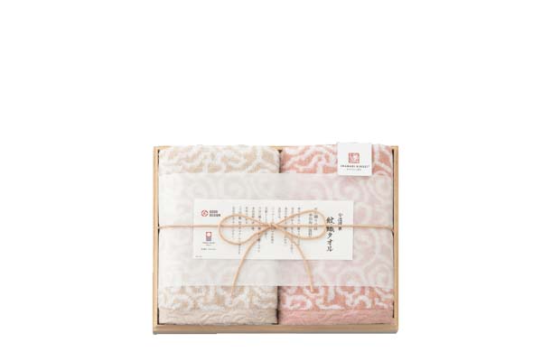 今治謹製 紋織タオル フェイスタオル2枚セット(木箱入) ピンク 〈IM7720〉 SG-r8a