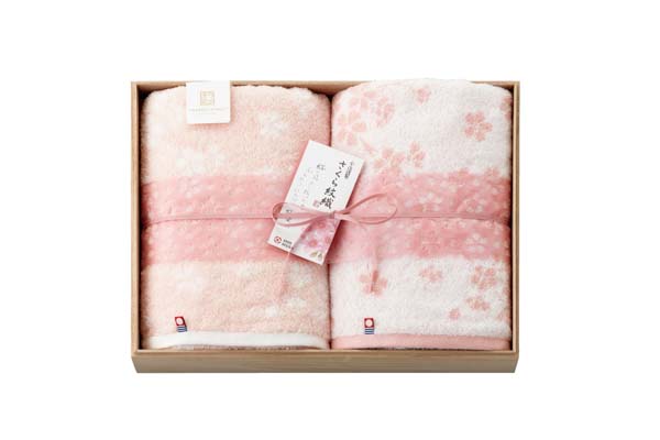 今治謹製 さくら紋織 桜染め バスタオル2枚セット(木箱入) 〈SM2270〉 SG-r8a