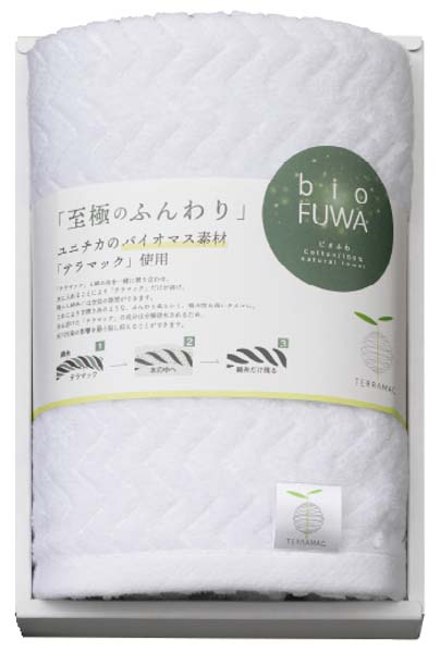 ユニチカのバイオマス素材『テラマック』を使用した、環境に配慮したタオルシリーズ。軽くて、ボリュームがあり、吸水性も抜群です。