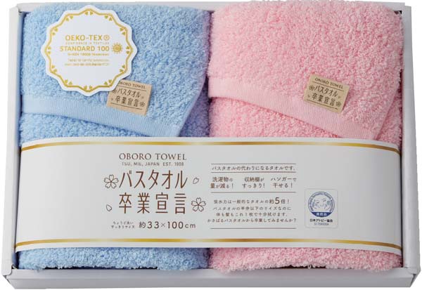 バスタオル卒業宣言 ロングフェイスタオル2枚セット ブルー×ピンク 〈SGS-3000 B×P〉 SG-r8a