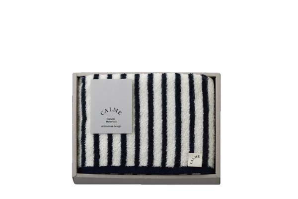 普遍的だけどおしゃれなストライプ柄。カラーもネイビーとブラウンとインテリアにも良く合う色を採用し、ユニセックスにご使用いただけるデザインです。・パイル部分にバンブーリヨセルを使用。コットンに比べてなめらかな肌触りです。またバンブーリヨセルはコットンと比べても吸水性が高く、普段使いにもとても重宝します。・パッケージは洗練され、落ち着いたアースカラーのベージュ。ギフトを受け取る方にも喜んでいただけるオシャレなパッケージです。