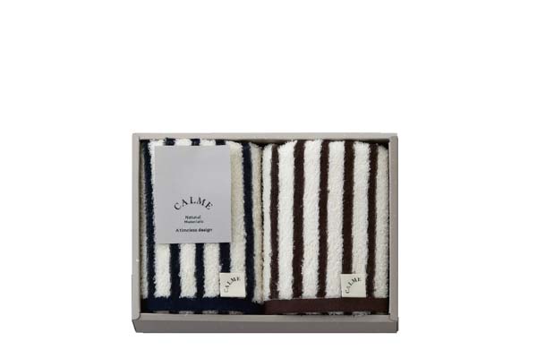 普遍的だけどおしゃれなストライプ柄。カラーもネイビーとブラウンとインテリアにも良く合う色を採用し、ユニセックスにご使用いただけるデザインです。・パイル部分にバンブーリヨセルを使用。コットンに比べてなめらかな肌触りです。またバンブーリヨセルはコットンと比べても吸水性が高く、普段使いにもとても重宝します。・パッケージは洗練され、落ち着いたアースカラーのベージュ。ギフトを受け取る方にも喜んでいただけるオシャレなパッケージです。