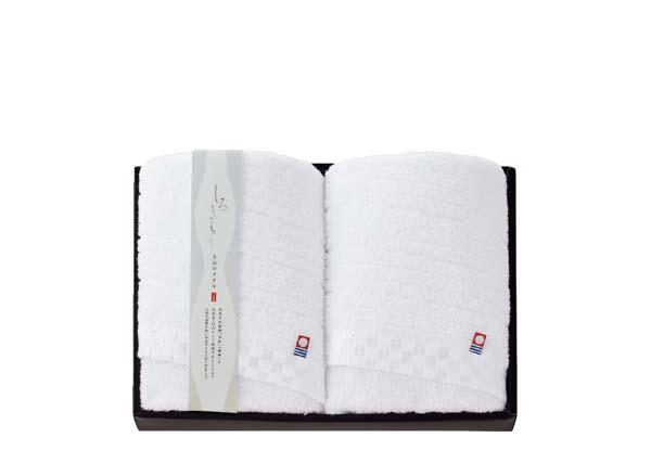 日本の伝統柄『市松』と『横縞』を、光沢糸とジャカード織りの凹凸により美しく表現しました。上品で清潔感あふれるまっ白な今治タオルに仕上げています。