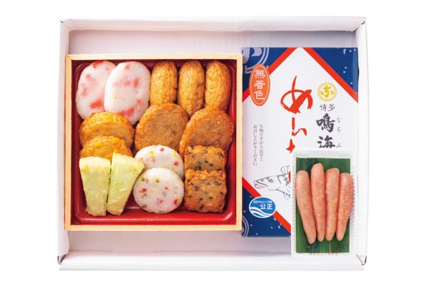 小田口屋のさつま揚げと鳴海屋の辛子明太子をコラボした、九州名産品の詰合せです。