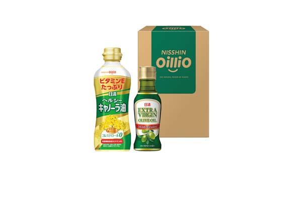 日清エキストラバージンオリーブオイルをはじめバラエティ豊かなヘルシーオイルを詰め合わせたギフトです。
