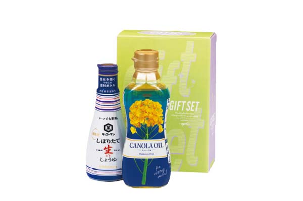 キッコーマンいつでも新鮮しぼりたて生しょうゆ200ml、昭和キャノーラ油300g