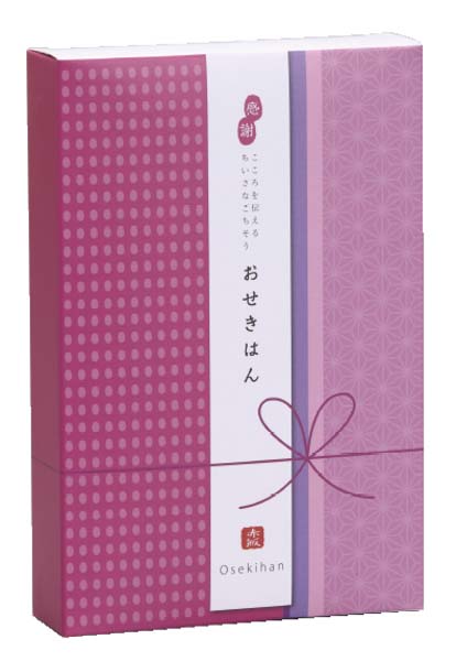 こころを伝えるちいさなごちそう「お赤飯」。古典柄と赤飯の豆をモチーフにしたパッケージで先様への感謝を表現しました。下ごしらえ要らずで炊きたてほかほかのお赤飯が簡単に作れます。