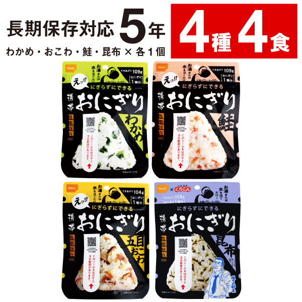 ![]() 尾西食品 携帯おにぎり 4食分 | ![]() 尾西食品 携帯おにぎり 8食分 | |