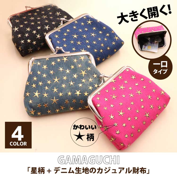 がま口財布 レディース デニム スター がまぐち 星 小銭 かわいい おしゃれ サブ 質感 使いやすい コインケース お札収納 財布 コンパクト お札収納 財布 小さい