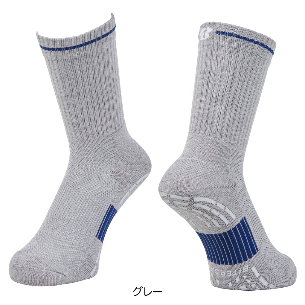 スパイクレスシューズ「ゼロ・スパイク バイター」シリーズの高いグリップ力をイメージし、足裏にシリコーン加工を施すことで靴の中で滑りにくい仕様にしたソックス。