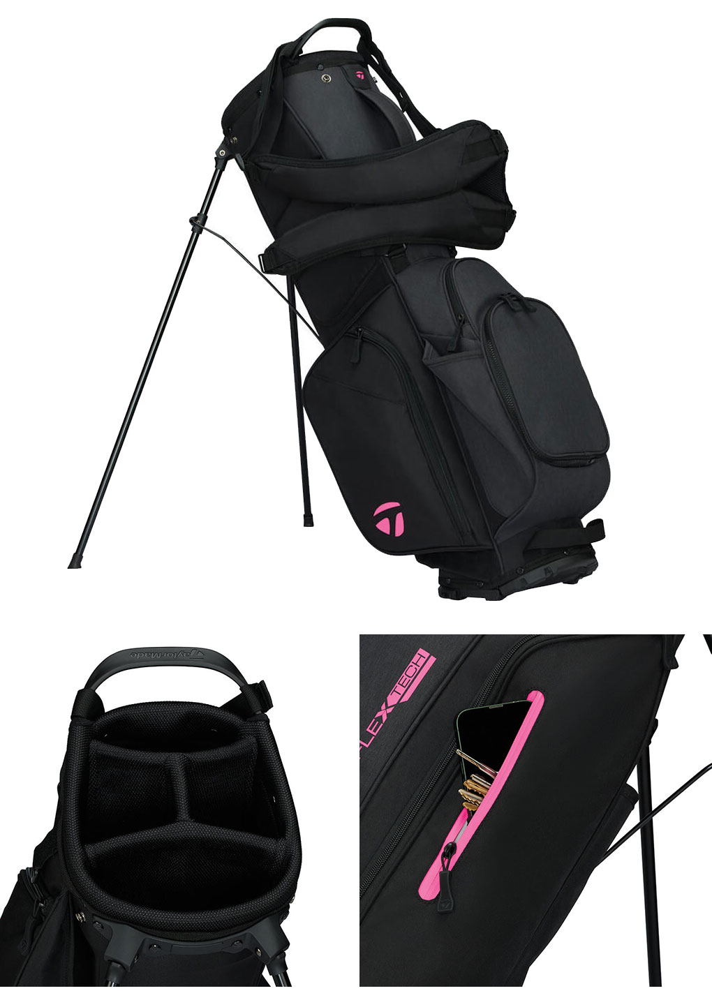 カジュアルに使えるコストパーフォーマンスの高い軽量スタンドバッグ。口枠ハンドル、ダブルショルダーベルトなど持ち運びしやすい仕様で、セルフプレーにもおすすめのモデル。