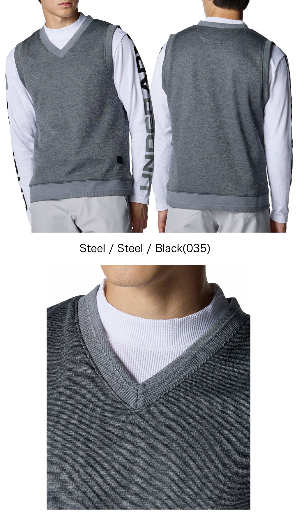 アンダーアーマーゴルフの機能性とスタイルを象徴するドライブシリーズ。UA独自の撥水加工によって雨や雪をはじき、冬でもベストなコンディションをキープ。裏起毛のフリースは軽くて温かく、しかも動きやすい。ゴルフ特有のダイナミックな動きにもしっかりフィットするから冬場のラウンドの力強い相棒。