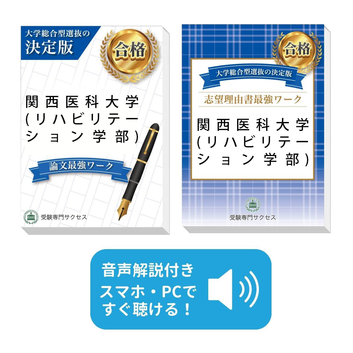 | 関西医科大学(リハビリテーション学部)・総合型選抜合格セットに含まれるもの ◆関西医科大学(リハビリテーション学部) 志望理由書最強ワーク ◆関西医科大学(リハビリテーション学部) 論文最強ワーク ※音声解説付き ※音声解説は、対象の問題集の目次ページに記載しているQRコードから、再生していただけます。 |
