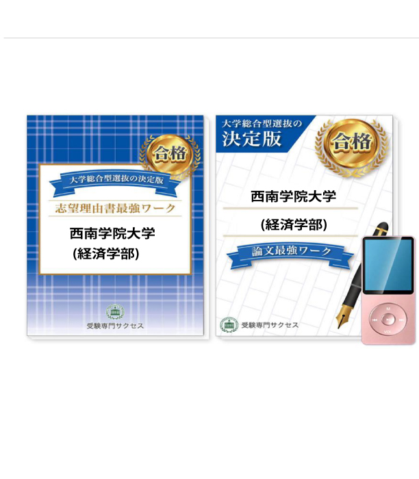 | 西南学院大学(経済学部)・総合型選抜合格セットに含まれるもの ◆西南学院大学(経済学部) 志望理由書最強ワーク ◆西南学院大学(経済学部) 論文最強ワーク ※MP3プレーヤー付き |