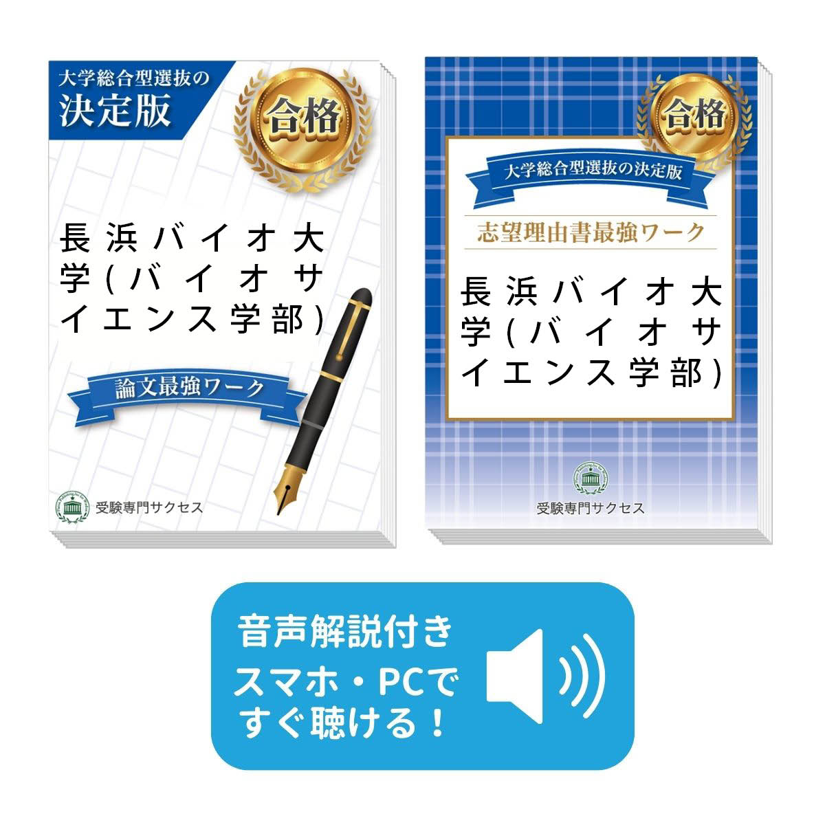 | 長浜バイオ大学(バイオサイエンス学部)・総合型選抜合格セットに含まれるもの ◆長浜バイオ大学(バイオサイエンス学部) 志望理由書最強ワーク ◆長浜バイオ大学(バイオサイエンス学部) 論文最強ワーク ※音声解説付き ※音声解説は、対象の問題集の目次ページに記載しているQRコードから、再生していただけます。 |
