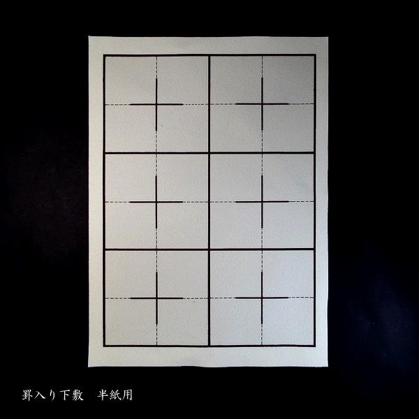 初級者の方には文字の大きさを均等に、まっすぐ箋を引く事が難しいですが、この下敷をご利用になりますと下の線が半紙に写るので調整が取りやすいです。シワになりにくい樹脂ラシャ製。