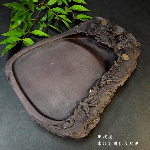【在庫限り】書道硯 旧坑 宋坑端渓硯 有眼 花鳥彫刻|書道 書道用品 すずり 天然石 高級 旧端渓 定価¥110000