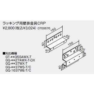 【0700676】ノーリツ ラッキング用壁掛金具CRP 【NORITZ】