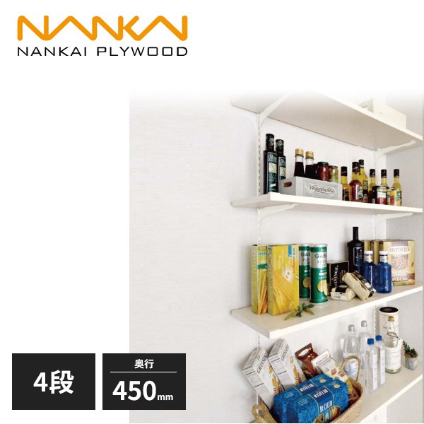 南海プライウッド 可動棚セット Bタイプ アームハング棚柱SS仕様 4段 D450 KTB4D4-W-LW-A