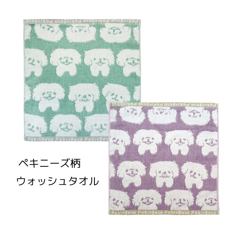 スチームシャーリング ペキニーズ ウォッシュタオル 犬柄 アニマル柄
