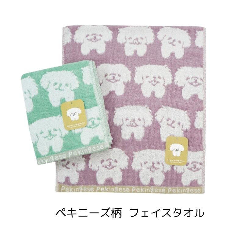 スチームシャーリング フェイスタオル ペキニーズ 犬柄 アニマル柄