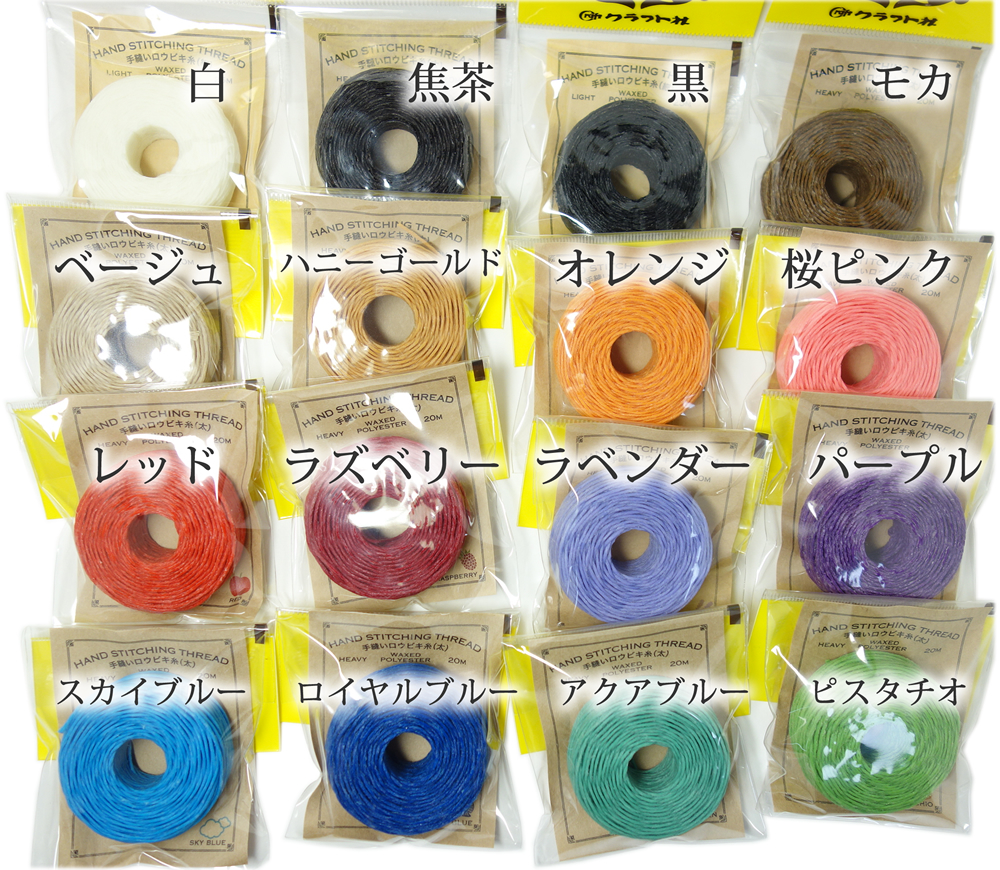 クラフト社 手縫いロウビキ糸 太 20m 10/6 全16色 クリックポスト(メール便)可