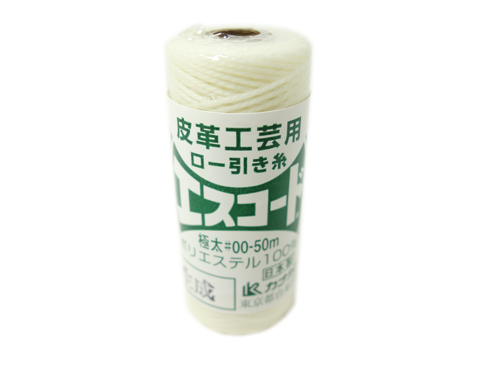 車のハンドル縫製にも利用されている強度に優れたポリエルテル製のロウ引き糸です。