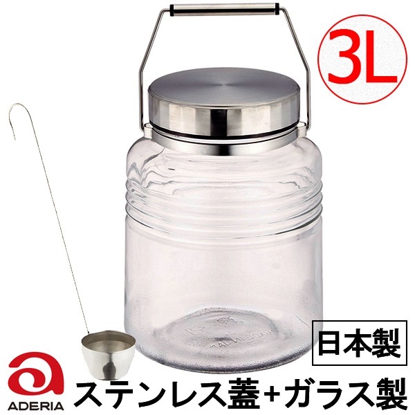 アデリア 日本製 梅酒瓶 果実酒 ステンレス蓋 ガラス製 MCコンテナー 3L レードル付き 815