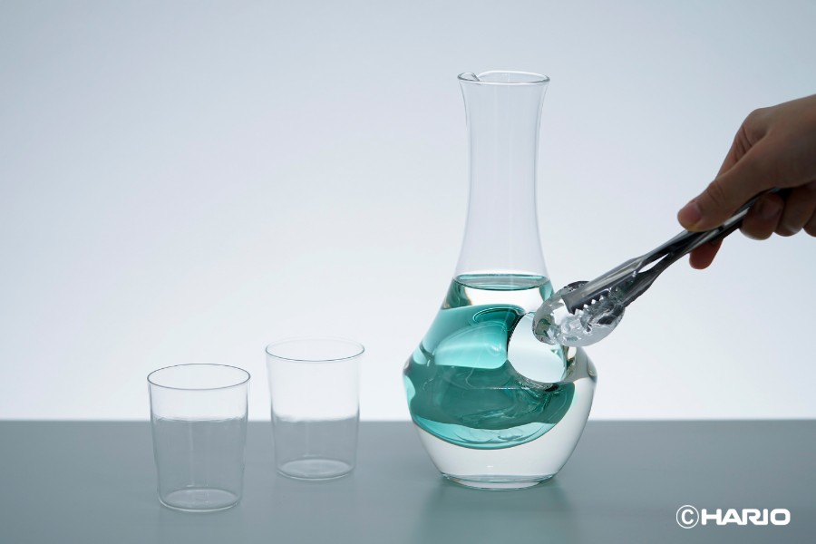 色ポケット部に氷を入れてお酒を薄めず冷やせるカラフェ。