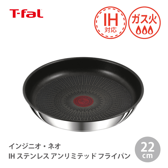 T-fal インジニオ・ネオ IHステンレス・アンリミテッド フライパン 22cm L97103 取っ手の取れる ティファール【IH対応 ガス火対応】