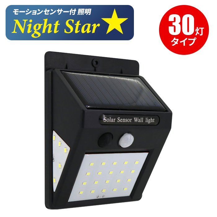 トレードワン モーションセンサー付 照明 ナイトスター ハイパータイプ 30灯 LED 【ソーラー充電 人感センサー 自動 点灯 消灯 防犯 対策 屋外 壁掛け 防水】