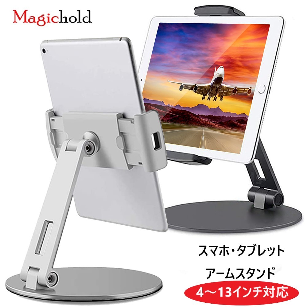 Magichold 4〜13インチ タブレットスタンド iPad スタンド アーム スマホスタンド タブレットアーム 360度回転 折りたたみ 日本語説明書付 ブラック/シルバー