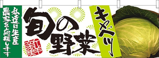 21957 横幕 旬の野菜 キャベツ 素材:ポリエステル サイズ:W1800mm×H600mm 受注生産(納期約2週間)