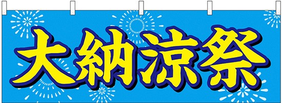 24215 横幕 大納涼祭 水色地 花火 素材:ポリエステル サイズ:W1800mm×H600mm 受注生産(納期約2週間)