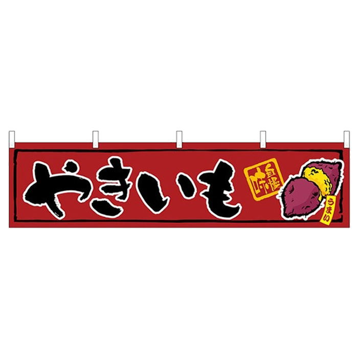 45670 横幕 味自慢 うまい やきいも 業務用 飲食店 写真入り 素材:ポンジ サイズ:W1800mm×H450mm 受注生産(納期約2週間)