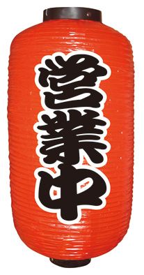 9073 九号長赤提灯 営業中 二面印刷 素材:ビニール製 サイズ:φ240mm×H520mm
