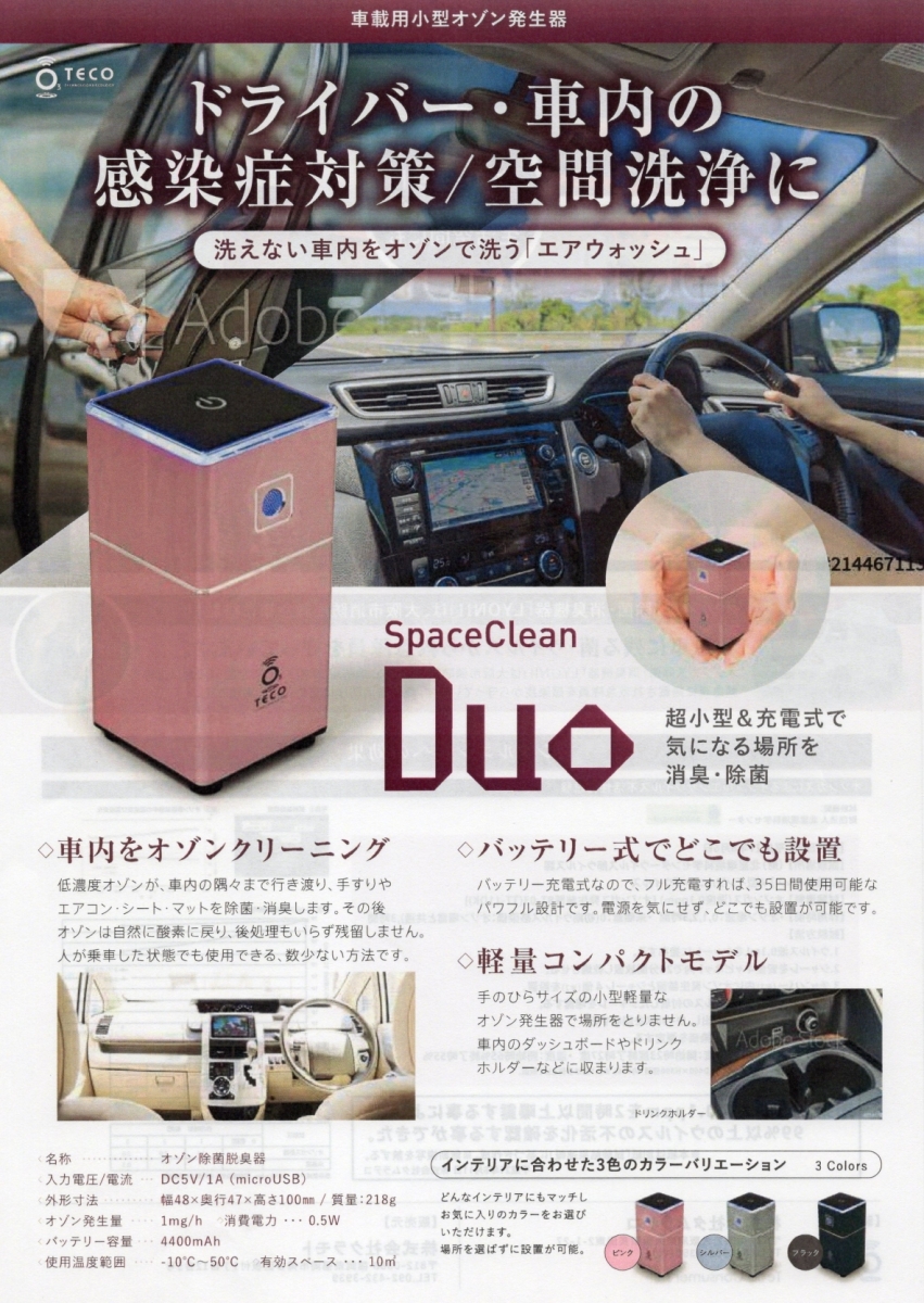 超小型&充電式低濃度オゾンが車内の隅々まで行きわたり、