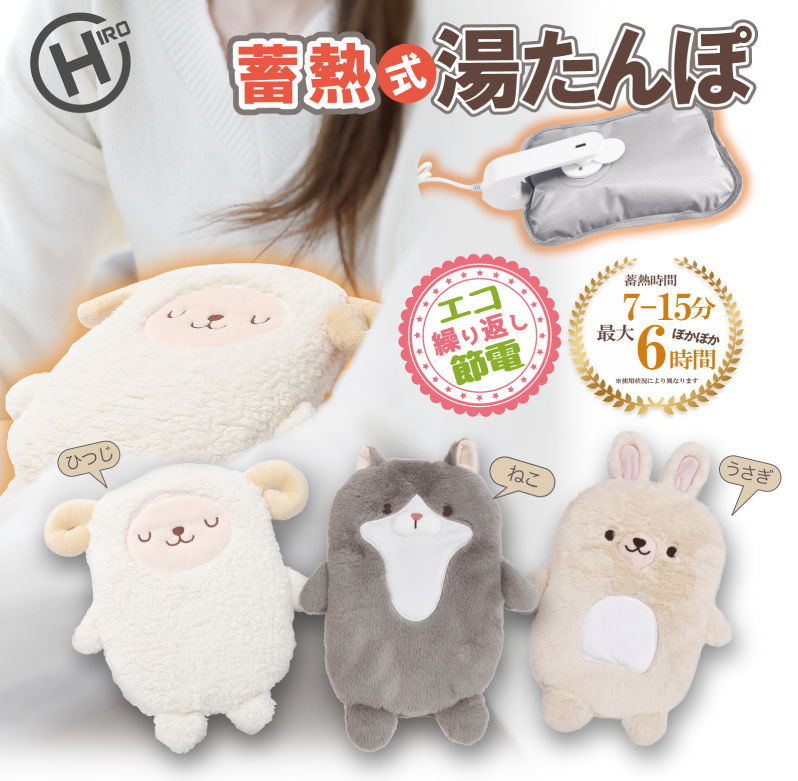 蓄熱式湯たんぽ ひつじ ねこ うさぎ 最大6時間使用 7-15分急速蓄熱 動物保温カバー 充電 ギフト プレゼント 贈り物 お湯不要 電気式 電気 蓄熱式 繰り返し