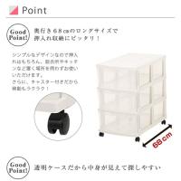 | 特徴 | 収納したものが探しやすいクリアタイプの引出し。 キャスター付きなので移動もラクラク。 |