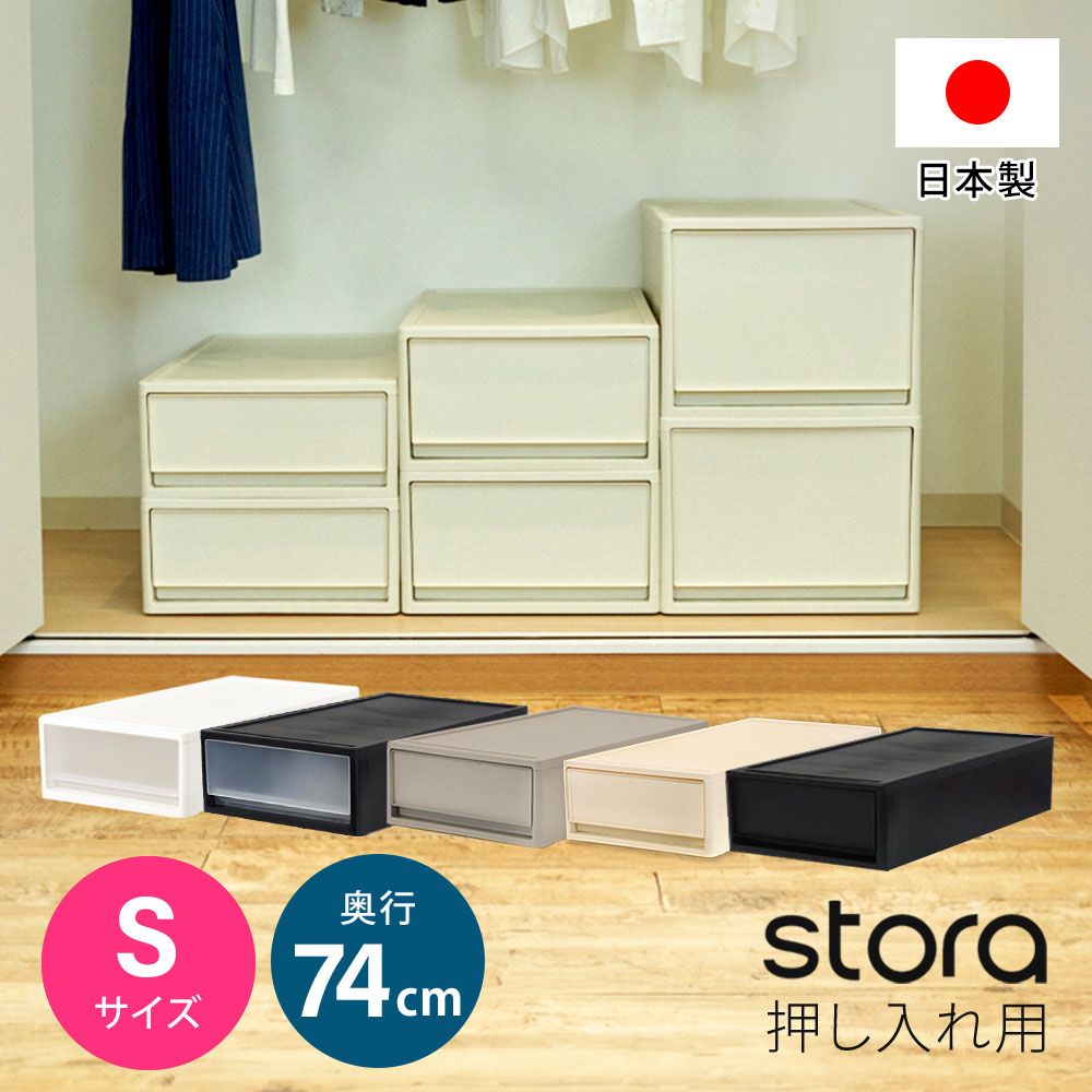 | 特徴 | 押入れやクローゼットにすっきり収納! 押入れ収納にオススメの奥行74cm・高さ18cmの1段引出し収納。 積み重ねてもずれない凹凸構造で、多段チェストとしても利用可能。 シンプルなつくりだからこそ、見出しやステッカー等を貼ってアレンジも自由自在。 |