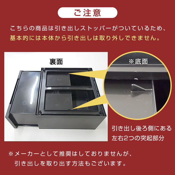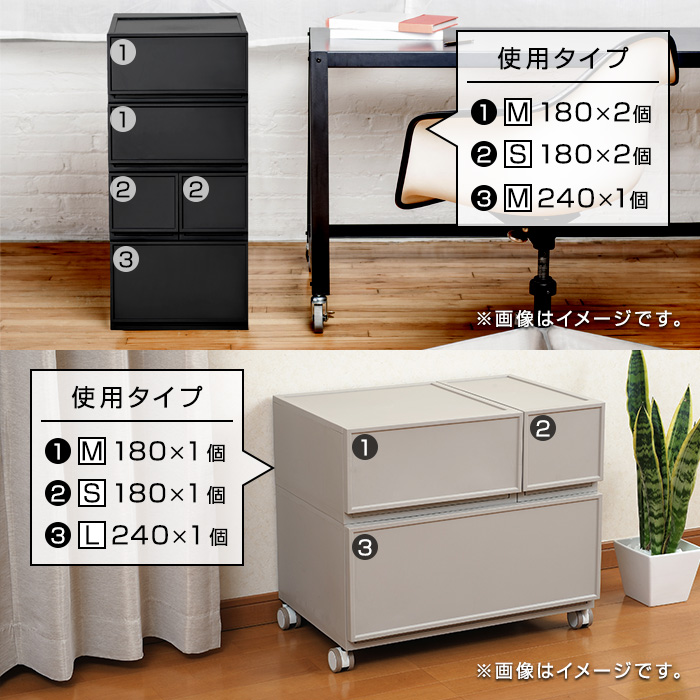 | 備考 | ・収納に便利な仕切り板付きです。 ・移動に便利なキャスター(別売)の取付が出来ます。 ・前倒れ防止用連結部品付き。 ※2019年6月5日より、ブラックが仕様変更となっております。 若干ブラックが強めになりました。) |