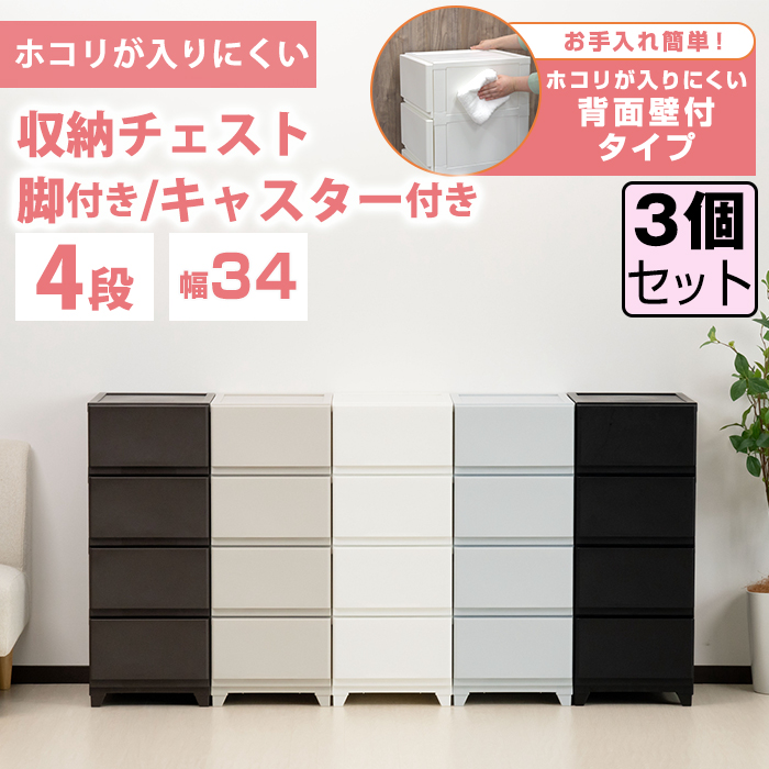 | 商品名 | 壁付収納チェスト 脚付き/キャスター付き 4段(同色3個セット) |