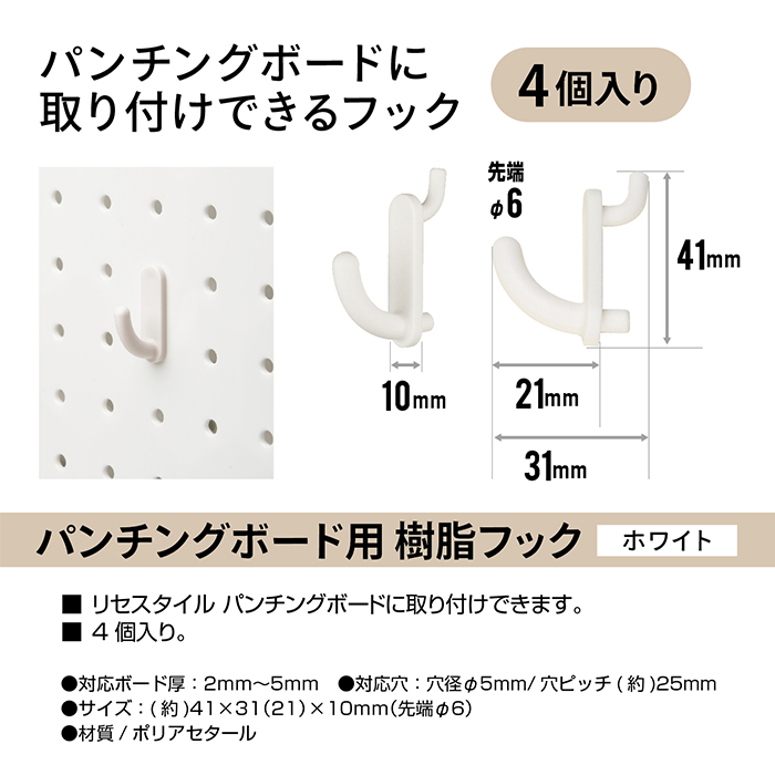 | 商品名 | リセスタイル パンチングボード用樹脂フック |