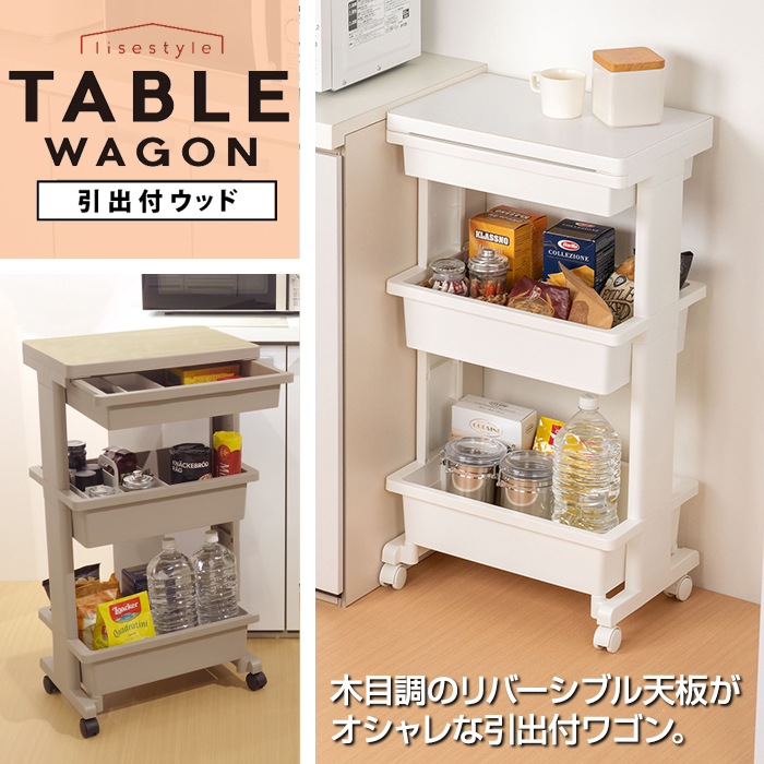 | 商品名 | リセスタイル テーブルワゴン3段引出付ウッド |