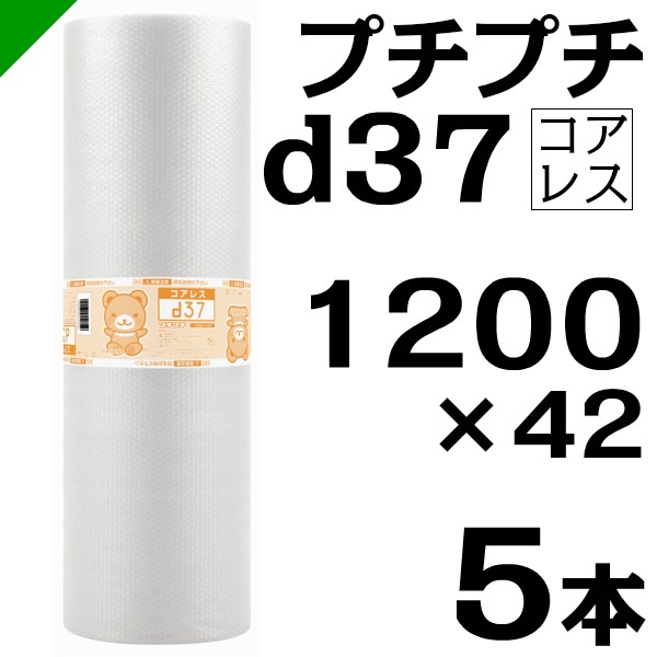 プチプチ d37 コアレス 1200mm×42M 5本 送料無料 ( 緩衝材 梱包材 ぷちぷち ロール エアキャップ エアパッキン 川上産業 )