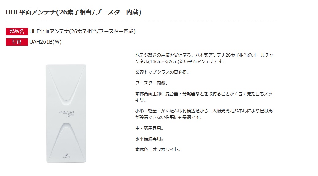 【提携倉庫から出荷】DXアンテナ 平面UHFアンテナ デジキャッチ 26素子相当 ブースター内蔵 オフホワイト UAH261B(W) [DXA000089]